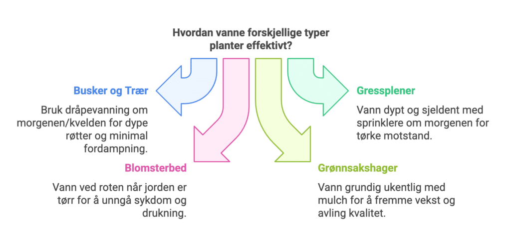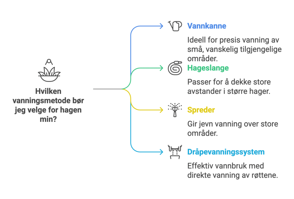 Ved å velge metoder som passer hagen din, kan du optimalisere veksten og unngå unødvendig vannforbruk.